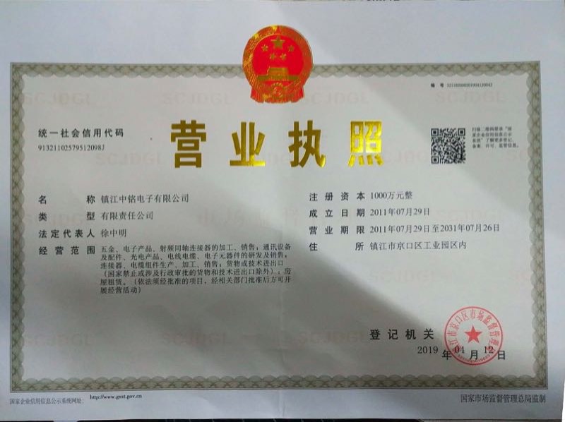 镇江中铭电子有限公司是由在射频微波领域有着极其丰富研发技服经验的团队骨干共同组建,是一家自主生产射频同轴连接器及线缆组件,专营射频微波元器件及提供射频解决方案的高科技企业,同时公司拥有已经形成规模的现代化工厂,自主生产射频同轴连接器。公司严格按照我国标准、IEC标准及国标、行标等产品标准,研制开发的四十多个系列,包括 MMCX MCX SMB SMA SSMB SMC等全系列射频同轴连接器。 镇江中铭电子将秉持客户至上为您提供优异的产品和满意的服务[ 查看详情 ]